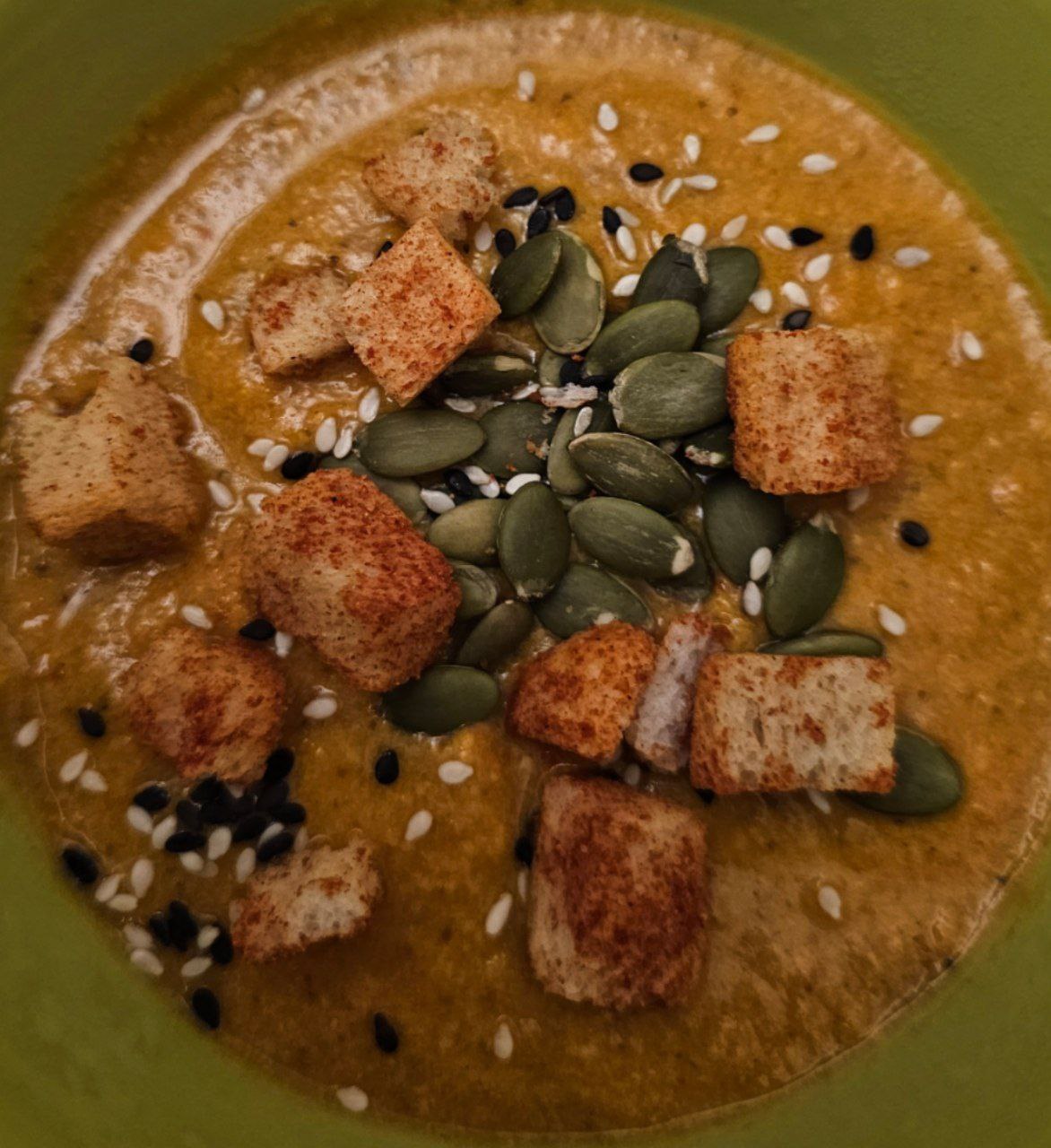 вчера светочка с небольшой помощью благоверного сделала тыквенный крем-суп получилось очень вкусно! и вайбово